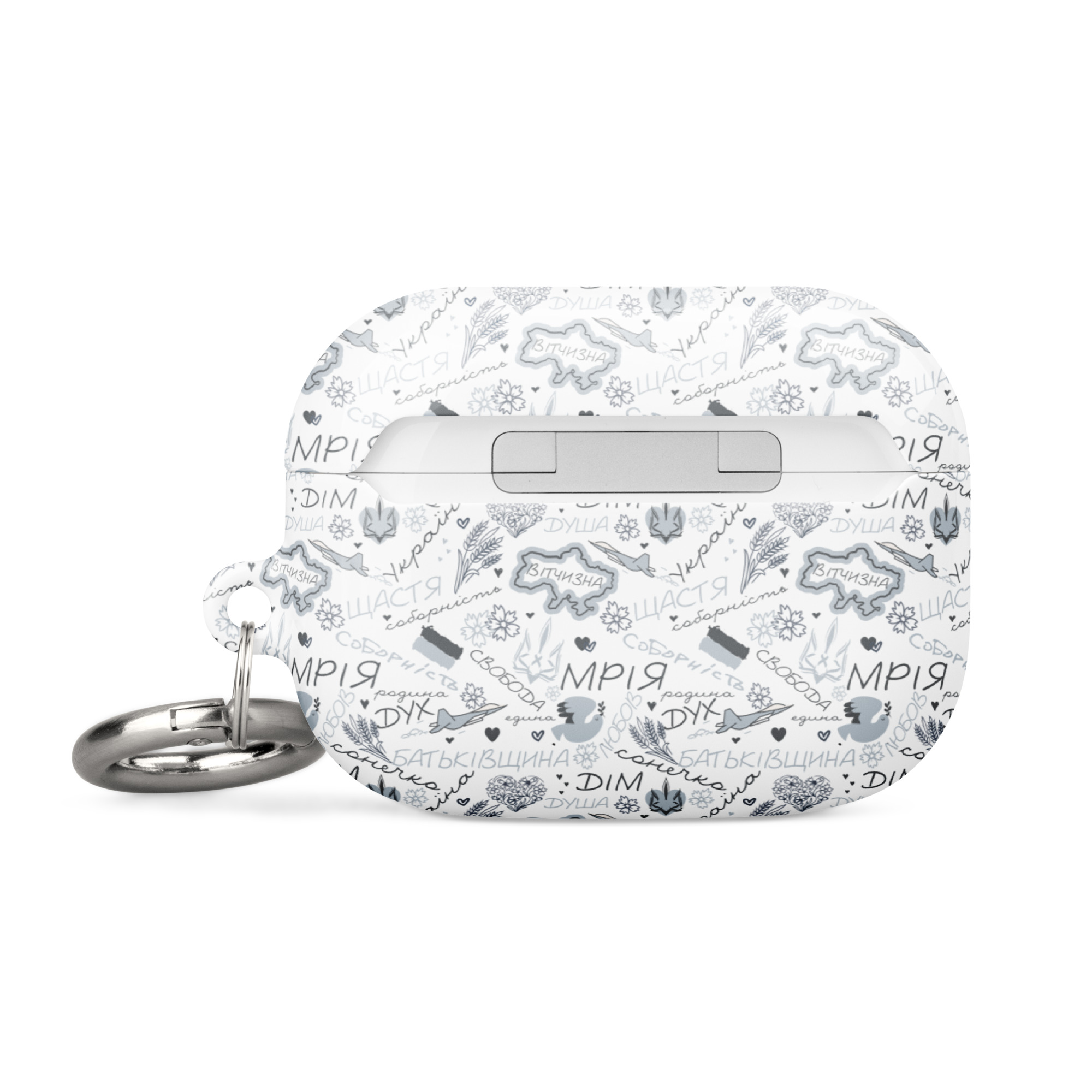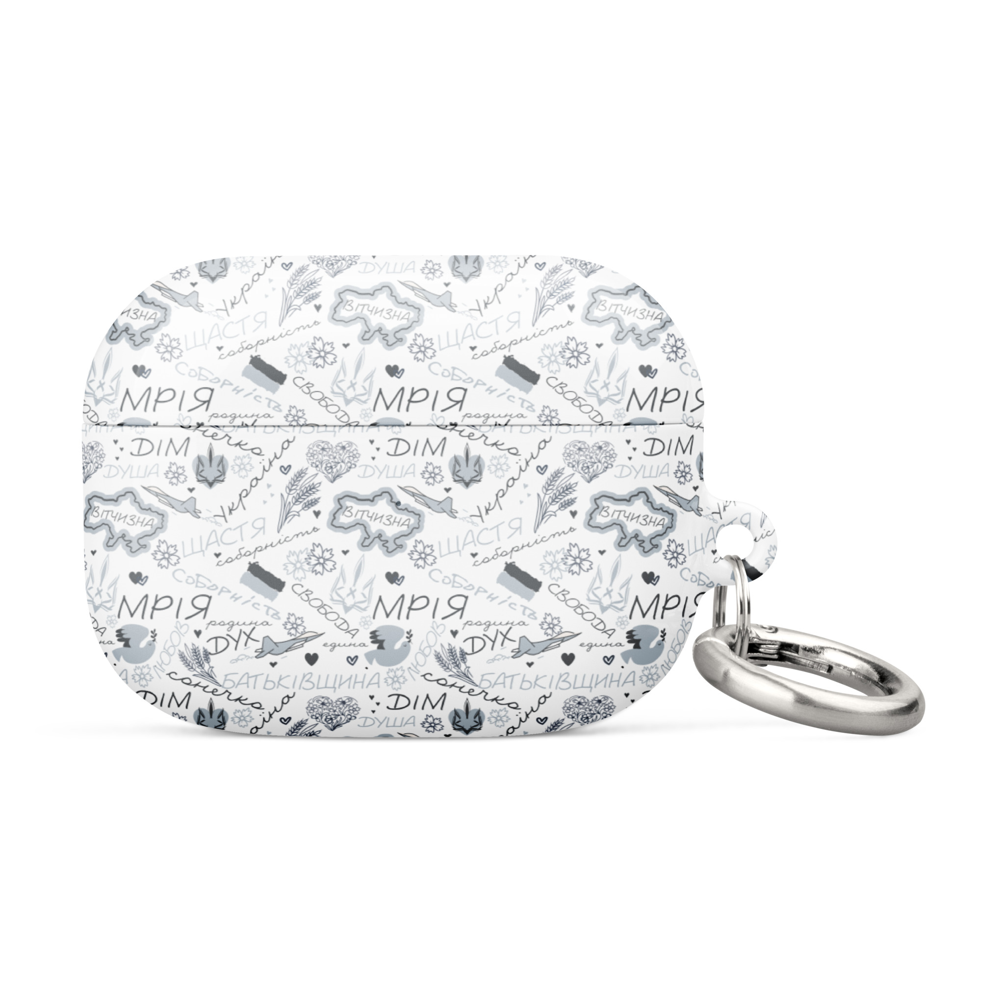 Show your support for Ukraine every time you reach for your AirPods® with the Ukrainian Symbols – Grey AirPods® Case. Featuring iconic Ukrainian designs on a sleek grey background, this case is a subtle yet striking way to express solidarity with Ukraine’s fight for freedom, peace, and security. It’s more than just a case—it’s a statement.