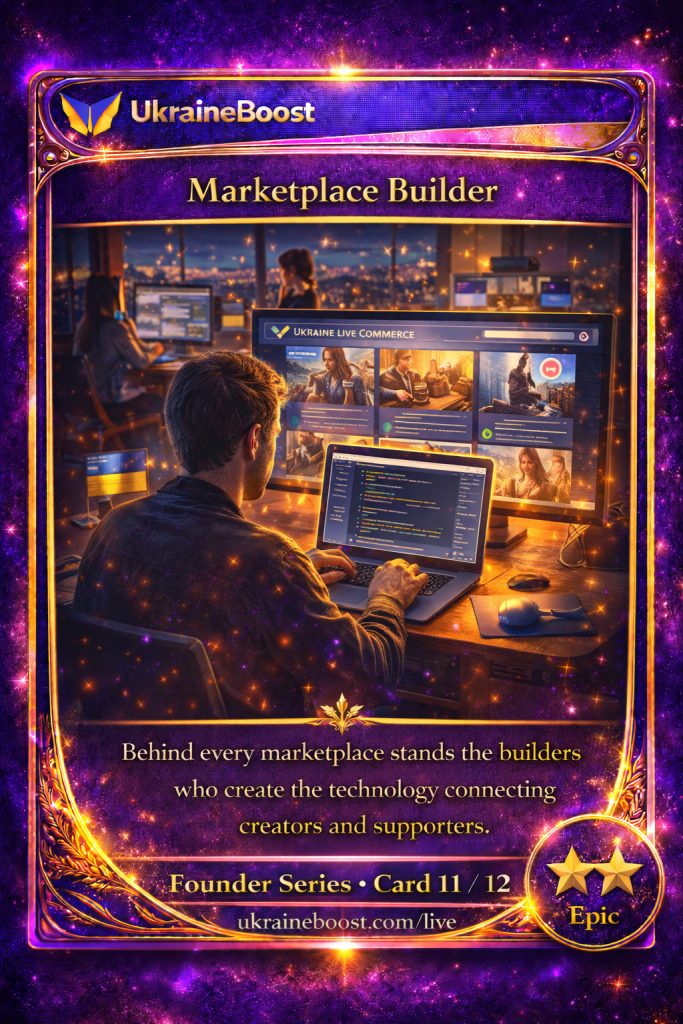 The Freedom Builder represents those who helped launch Ukraine Live Commerce. Their support enables creators to reach the world and build independence through their work.